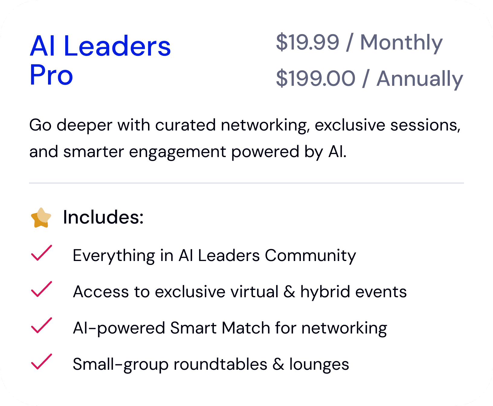 Turn one-time event attendees into engaged, ongoing community members through AI-powered networking, smart follow-ups, and measurable engagement.