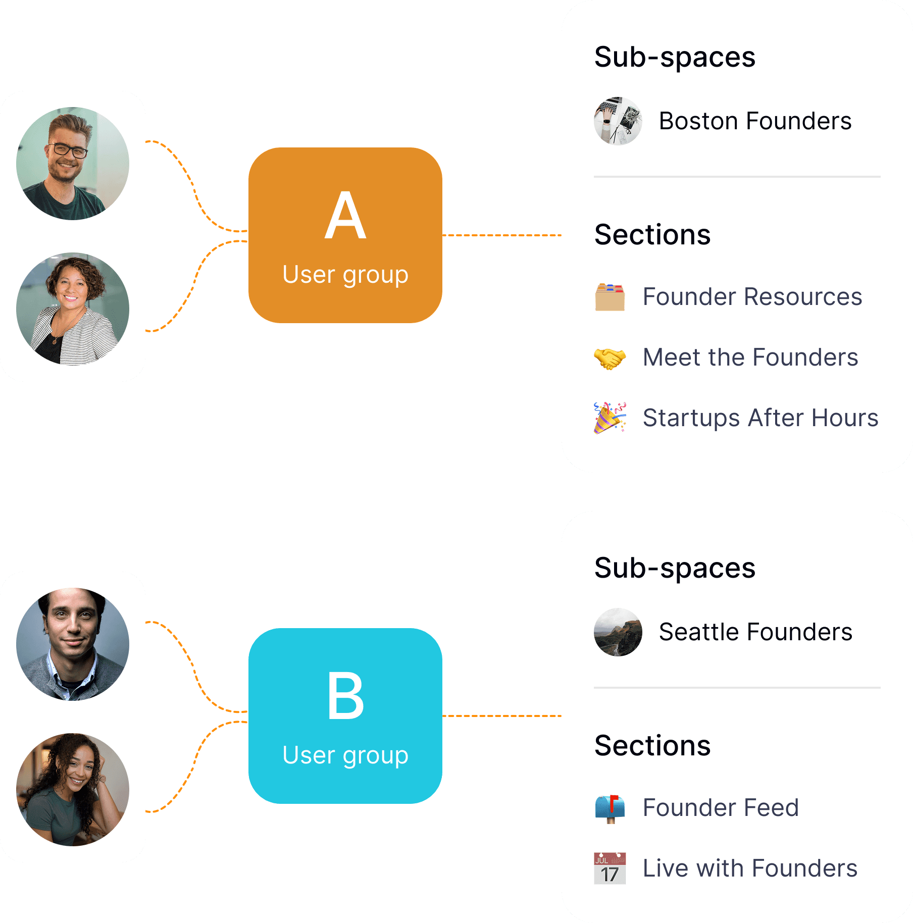 Structure every part of your community in one place — with built-in organization, linked content, and clear access control.