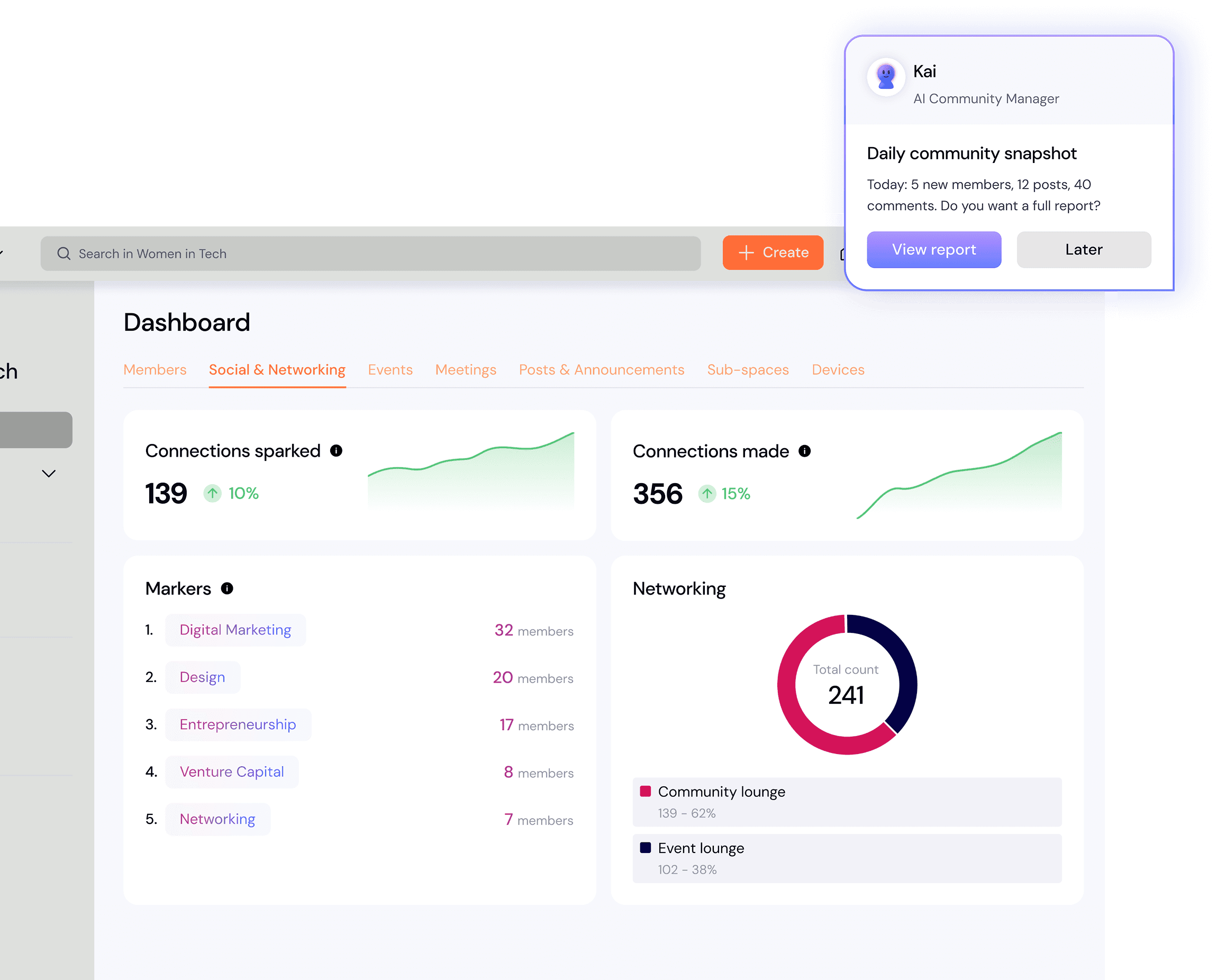 See who’s active, who’s fading, and what’s driving engagement across your entire community — powered by actionable, AI-generated insights.